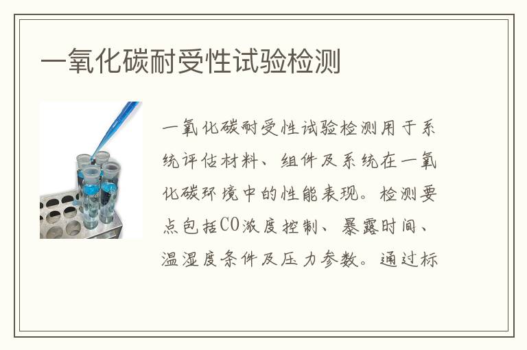 關鍵詞:一氧化碳耐受性試驗測試范圍,一氧化碳耐受性試驗測試案例,一氧化碳耐受性試驗測試周期