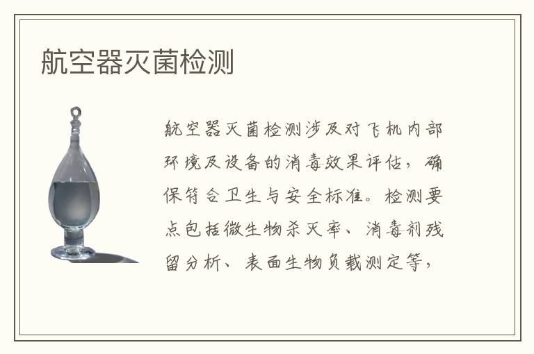關(guān)鍵詞:航空器滅菌測(cè)試標(biāo)準(zhǔn),航空器滅菌測(cè)試機(jī)構(gòu),航空器滅菌測(cè)試周期