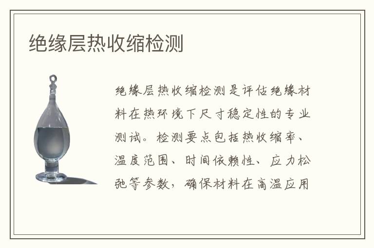 關(guān)鍵詞:絕緣層熱收縮項(xiàng)目報(bào)價(jià),絕緣層熱收縮測(cè)試儀器,絕緣層熱收縮測(cè)試案例