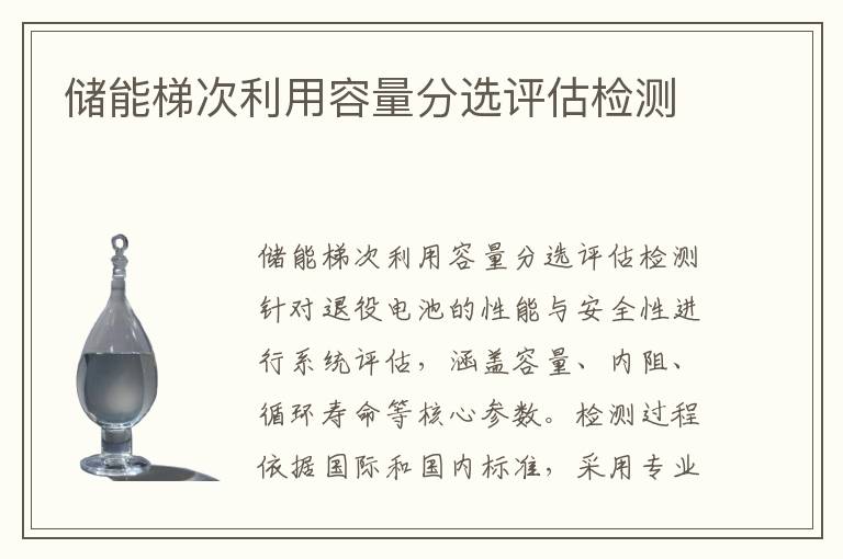 關(guān)鍵詞:儲(chǔ)能梯次利用容量分選評(píng)估測(cè)試范圍,儲(chǔ)能梯次利用容量分選評(píng)估測(cè)試儀器,儲(chǔ)能梯次利用容量分選評(píng)估測(cè)試機(jī)構(gòu)