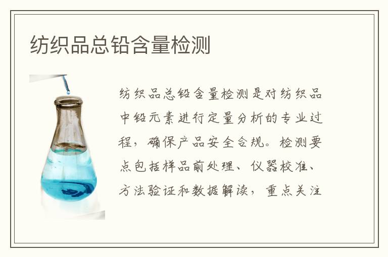 關(guān)鍵詞:紡織品總鉛含量測(cè)試案例,紡織品總鉛含量測(cè)試范圍,紡織品總鉛含量測(cè)試周期