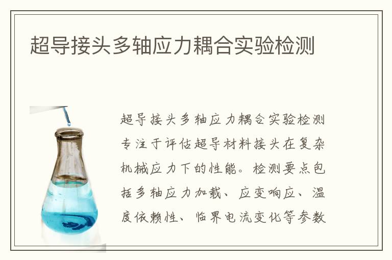 關(guān)鍵詞:超導(dǎo)接頭多軸應(yīng)力耦合實(shí)驗(yàn)測試儀器,超導(dǎo)接頭多軸應(yīng)力耦合實(shí)驗(yàn)測試方法,超導(dǎo)接頭多軸應(yīng)力耦合實(shí)驗(yàn)項(xiàng)目報(bào)價(jià)