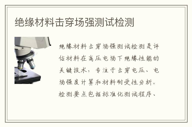 關鍵詞:絕緣材料擊穿場強測試測試周期,絕緣材料擊穿場強測試測試范圍,絕緣材料擊穿場強測試測試標準