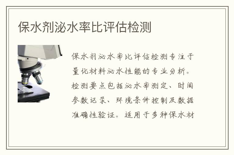關(guān)鍵詞:保水劑泌水率比評估測試儀器,保水劑泌水率比評估測試機(jī)構(gòu),保水劑泌水率比評估測試周期
