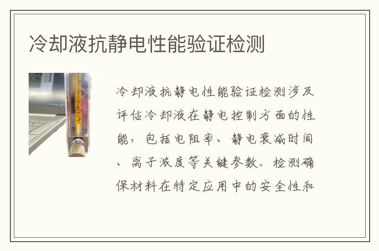 關(guān)鍵詞:冷卻液抗靜電性能驗(yàn)證測(cè)試范圍,冷卻液抗靜電性能驗(yàn)證測(cè)試方法,冷卻液抗靜電性能驗(yàn)證測(cè)試標(biāo)準(zhǔn)