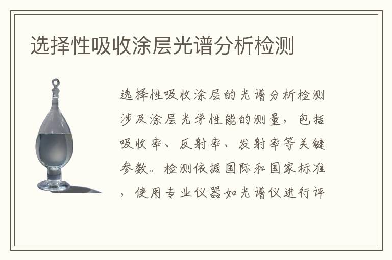 關(guān)鍵詞:選擇性吸收涂層光譜分析測(cè)試周期,選擇性吸收涂層光譜分析測(cè)試方法,選擇性吸收涂層光譜分析測(cè)試儀器