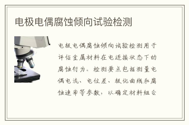 關(guān)鍵詞:電極電偶腐蝕傾向試驗(yàn)測試范圍,電極電偶腐蝕傾向試驗(yàn)測試機(jī)構(gòu),電極電偶腐蝕傾向試驗(yàn)測試案例