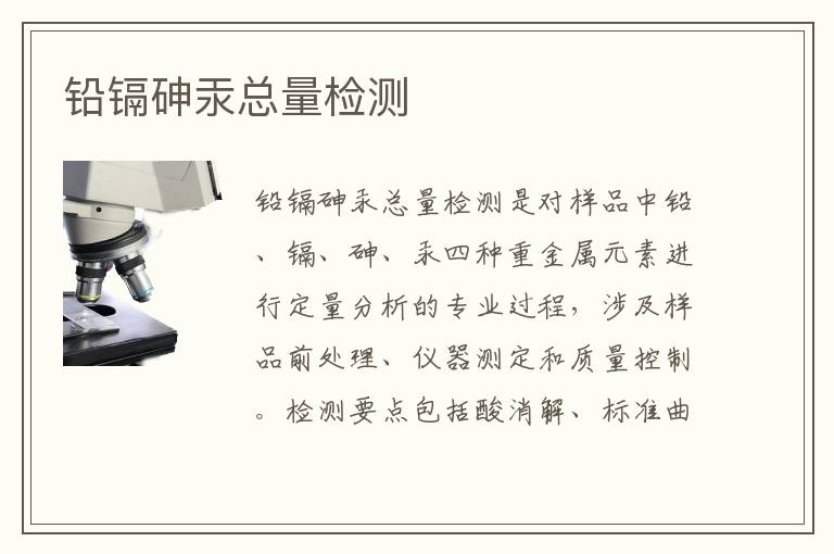 關(guān)鍵詞:鉛鎘砷汞總量測(cè)試案例,鉛鎘砷汞總量測(cè)試儀器,鉛鎘砷汞總量測(cè)試周期
