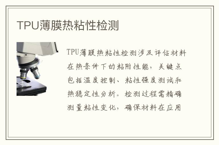 關鍵詞:TPU薄膜熱粘性測試范圍,TPU薄膜熱粘性測試標準,TPU薄膜熱粘性測試周期