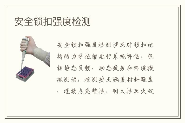 關(guān)鍵詞:安全鎖扣強(qiáng)度項(xiàng)目報(bào)價(jià),安全鎖扣強(qiáng)度測(cè)試方法,安全鎖扣強(qiáng)度測(cè)試案例