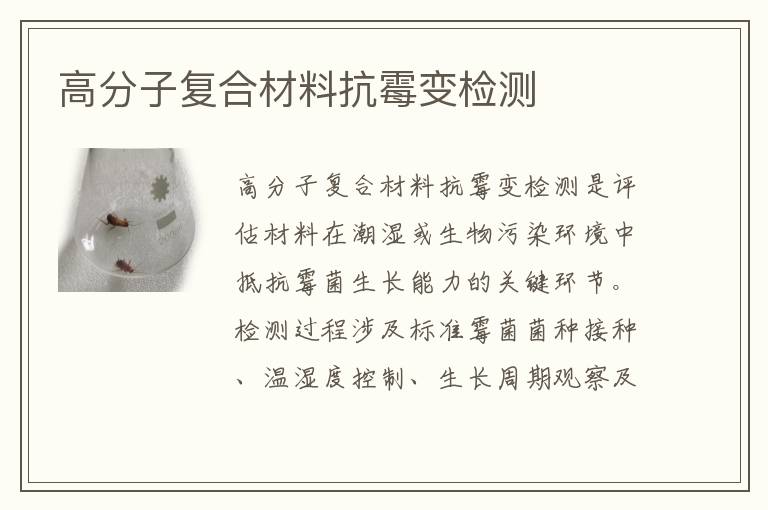 關(guān)鍵詞:高分子復(fù)合材料抗霉變測(cè)試方法,高分子復(fù)合材料抗霉變測(cè)試周期,高分子復(fù)合材料抗霉變測(cè)試標(biāo)準(zhǔn)