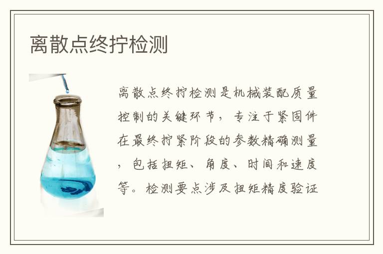 關(guān)鍵詞:離散點(diǎn)終擰測(cè)試范圍,離散點(diǎn)終擰測(cè)試儀器,離散點(diǎn)終擰測(cè)試方法