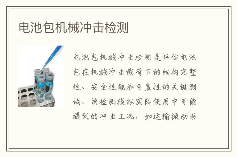 關(guān)鍵詞:電池包機械沖擊測試方法,電池包機械沖擊測試范圍,電池包機械沖擊測試案例