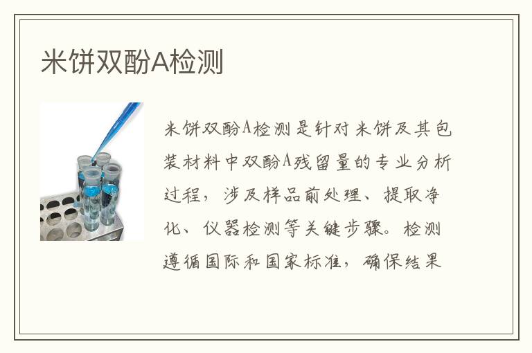關鍵詞:米餅雙酚A測試周期,米餅雙酚A測試范圍,米餅雙酚A項目報價