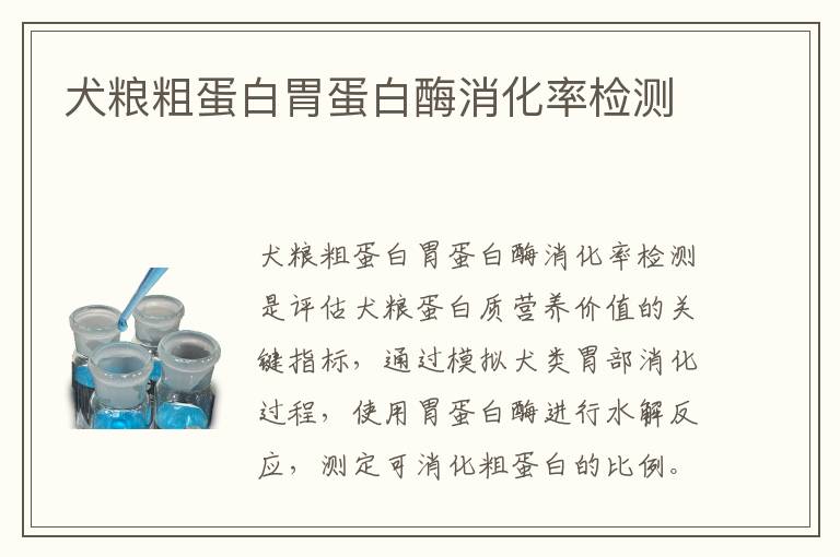 關鍵詞:犬糧粗蛋白胃蛋白酶消化率測試案例,犬糧粗蛋白胃蛋白酶消化率測試機構,犬糧粗蛋白胃蛋白酶消化率測試標準