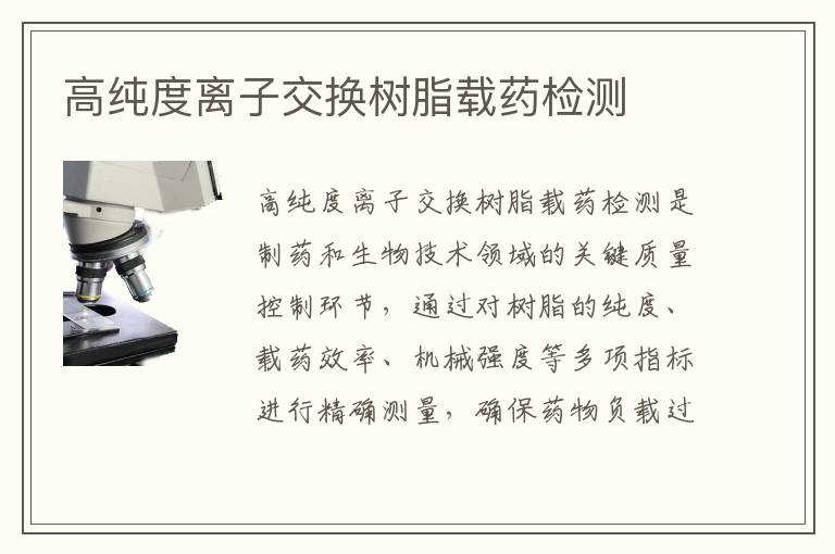 關(guān)鍵詞:高純度離子交換樹脂載藥測試標(biāo)準(zhǔn),高純度離子交換樹脂載藥測試案例,高純度離子交換樹脂載藥測試方法