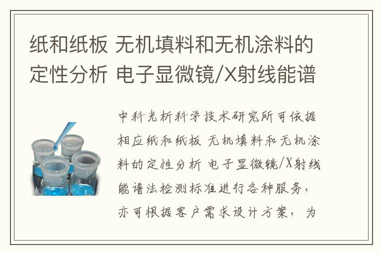關鍵詞:紙和紙板無機填料和無機涂料的定性分析電子顯微鏡/X射線能譜法測試儀器,紙和紙板無機填料和無機涂料的定性分析電子顯微鏡/X射線能譜法測試周期,紙和紙板無機填料和無
