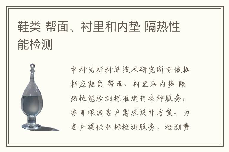 關(guān)鍵詞:鞋類幫面、襯里和內(nèi)墊隔熱性能項目報價,鞋類幫面、襯里和內(nèi)墊隔熱性能測試機構(gòu),鞋類幫面、襯里和內(nèi)墊隔熱性能測試儀器
