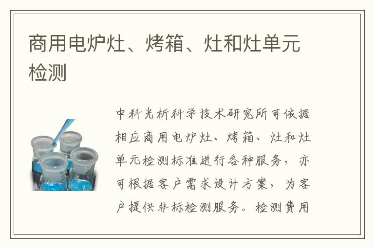 關(guān)鍵詞:商用電爐灶、烤箱、灶和灶單元項(xiàng)目報(bào)價(jià),商用電爐灶、烤箱、灶和灶單元測(cè)試標(biāo)準(zhǔn),商用電爐灶、烤箱、灶和灶單元測(cè)試方法