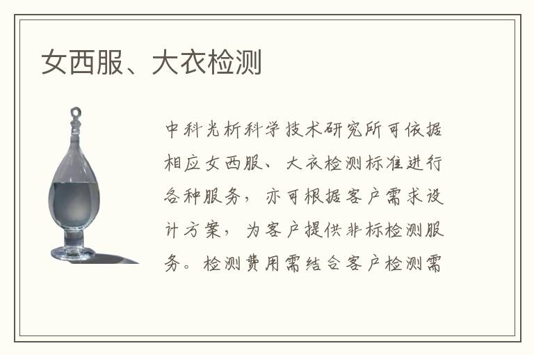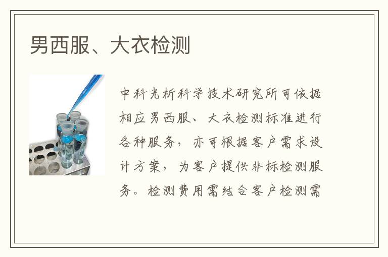 外套類服裝:包括風(fēng)衣和大衣,檢測(cè)粘合強(qiáng)度和水洗后尺寸變化,防止外層分離。