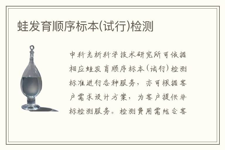 關(guān)鍵詞:蛙發(fā)育順序標(biāo)本(試行)測試標(biāo)準(zhǔn),蛙發(fā)育順序標(biāo)本(試行)測試儀器,蛙發(fā)育順序標(biāo)本(試行)項(xiàng)目報(bào)價(jià)