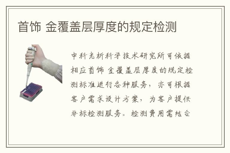 關(guān)鍵詞:首飾金覆蓋層厚度的規(guī)定測(cè)試標(biāo)準(zhǔn),首飾金覆蓋層厚度的規(guī)定測(cè)試周期,首飾金覆蓋層厚度的規(guī)定項(xiàng)目報(bào)價(jià)