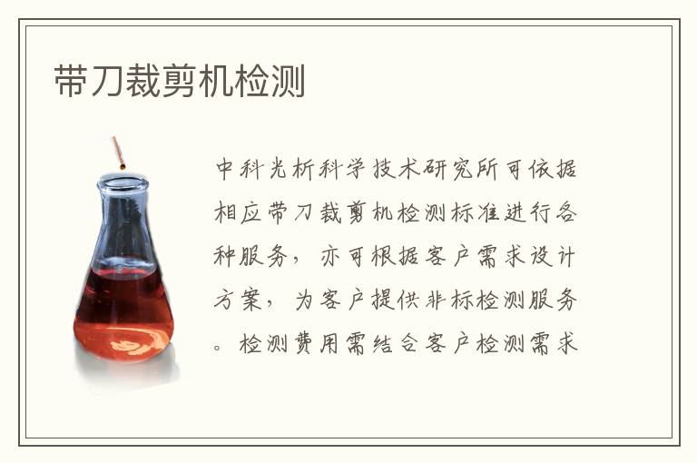 關(guān)鍵詞:帶刀裁剪機(jī)測(cè)試機(jī)構(gòu),帶刀裁剪機(jī)項(xiàng)目報(bào)價(jià),帶刀裁剪機(jī)測(cè)試周期
