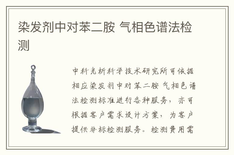 關(guān)鍵詞:染發(fā)劑中對苯二胺氣相色譜法測試范圍,染發(fā)劑中對苯二胺氣相色譜法測試方法,染發(fā)劑中對苯二胺氣相色譜法測試案例