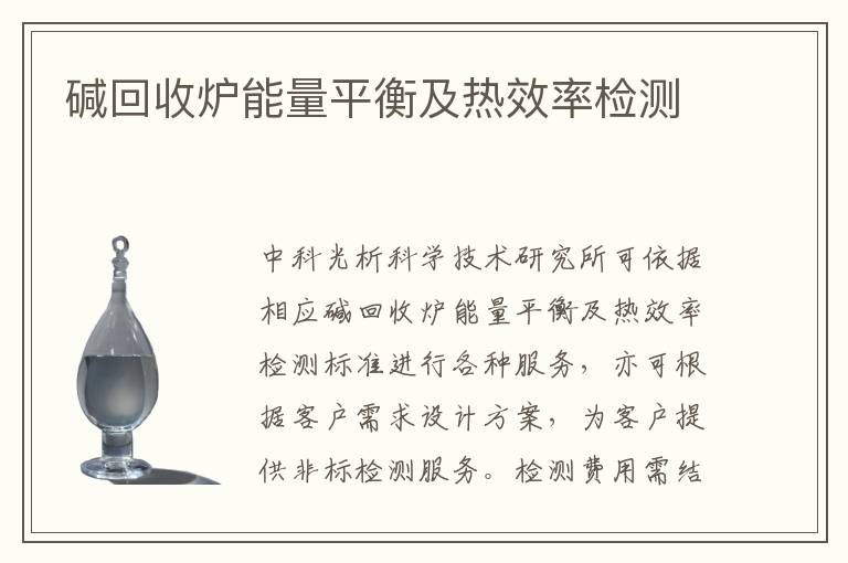 關(guān)鍵詞:堿回收爐能量平衡及熱效率測試周期,堿回收爐能量平衡及熱效率測試方法,堿回收爐能量平衡及熱效率測試機(jī)構(gòu)