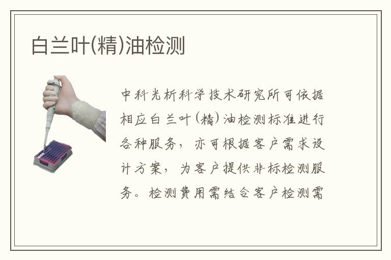 關(guān)鍵詞:白蘭葉(精)油項目報價,白蘭葉(精)油測試標(biāo)準(zhǔn),白蘭葉(精)油測試方法