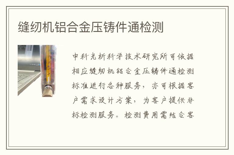 關(guān)鍵詞:縫紉機(jī)鋁合金壓鑄件通測(cè)試儀器,縫紉機(jī)鋁合金壓鑄件通測(cè)試機(jī)構(gòu),縫紉機(jī)鋁合金壓鑄件通項(xiàng)目報(bào)價(jià)