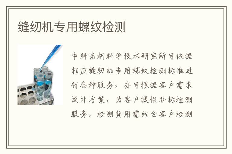 關(guān)鍵詞:縫紉機(jī)專用螺紋項(xiàng)目報(bào)價(jià),縫紉機(jī)專用螺紋測(cè)試儀器,縫紉機(jī)專用螺紋測(cè)試周期