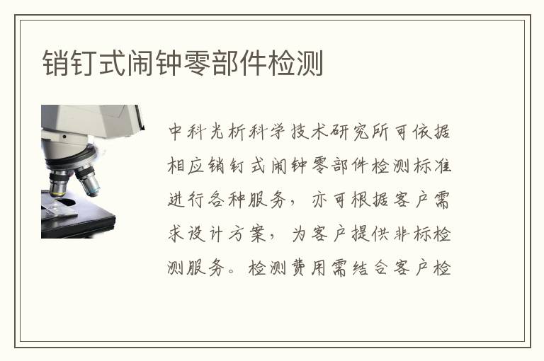 關鍵詞:銷釘式鬧鐘零部件測試標準,銷釘式鬧鐘零部件項目報價,銷釘式鬧鐘零部件測試案例