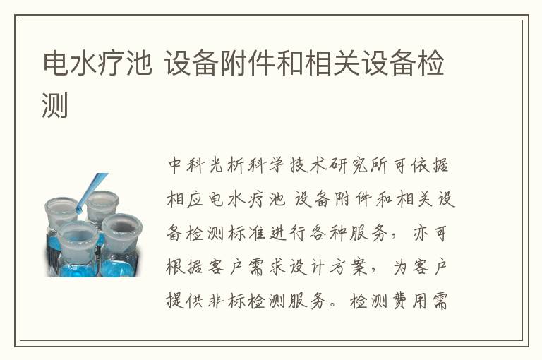 關(guān)鍵詞:電水療池設(shè)備附件和相關(guān)設(shè)備測試方法,電水療池設(shè)備附件和相關(guān)設(shè)備測試周期,電水療池設(shè)備附件和相關(guān)設(shè)備測試標(biāo)準(zhǔn)