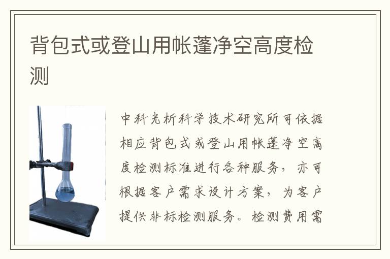 關(guān)鍵詞:背包式或登山用帳蓬凈空高度項目報價,背包式或登山用帳蓬凈空高度測試機構(gòu),背包式或登山用帳蓬凈空高度測試標準