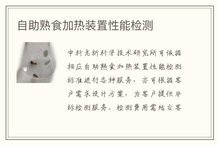 關(guān)鍵詞:自助熟食加熱裝置性能測(cè)試儀器,自助熟食加熱裝置性能測(cè)試標(biāo)準(zhǔn),自助熟食加熱裝置性能測(cè)試案例