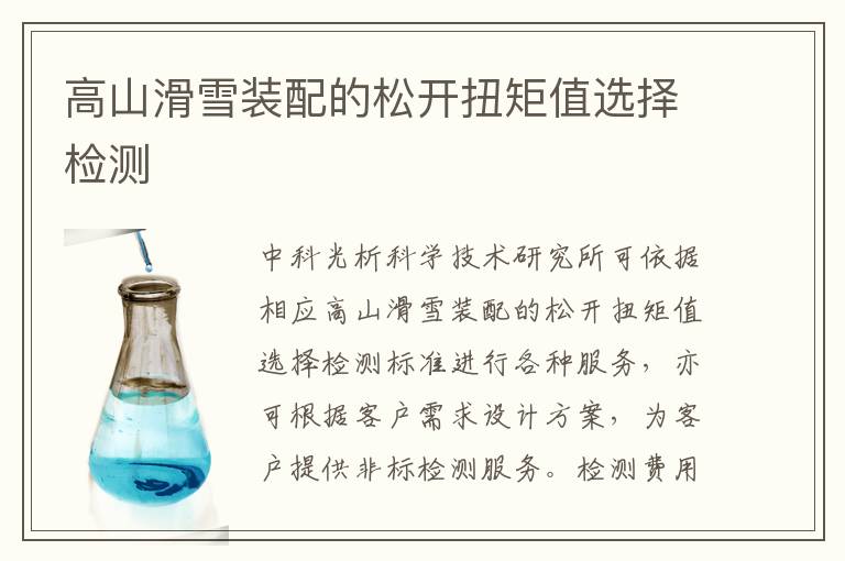 關(guān)鍵詞:高山滑雪裝配的松開扭矩值選擇測(cè)試標(biāo)準(zhǔn),高山滑雪裝配的松開扭矩值選擇測(cè)試周期,高山滑雪裝配的松開扭矩值選擇測(cè)試方法