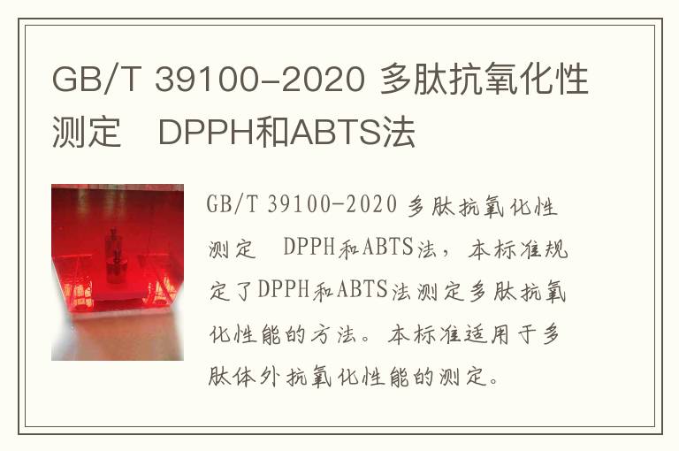 關(guān)鍵詞:GB/T 39100-2020 多肽抗氧化性測(cè)定 DPPH和