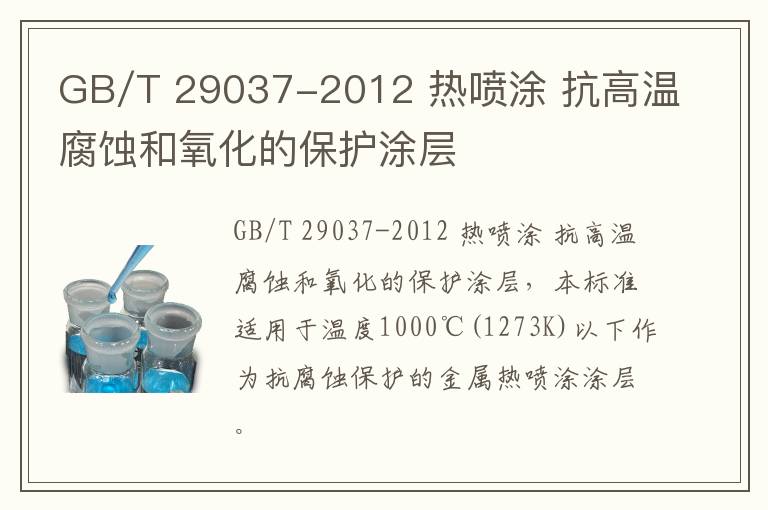 關鍵詞:GB/T 29037-2012 熱噴涂 抗高溫腐蝕和氧化的保