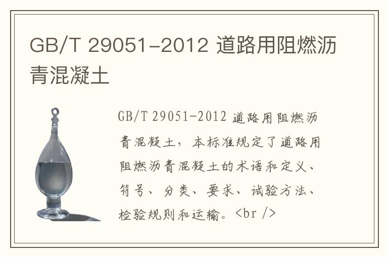關(guān)鍵詞:GB/T 29051-2012 道路用阻燃瀝青混凝土