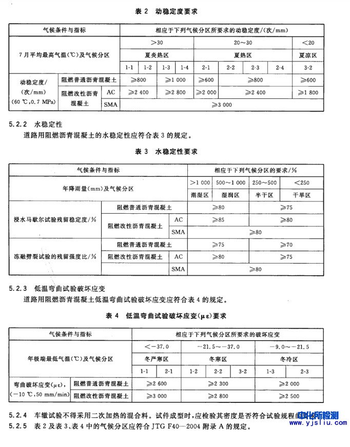 5.2 道路用阻燃瀝青混凝土路用性能要求