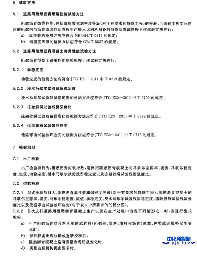 5.1.1 道路用阻燃瀝青燃燒性能的指標(biāo)要求應(yīng)符合表1的規(guī)定。