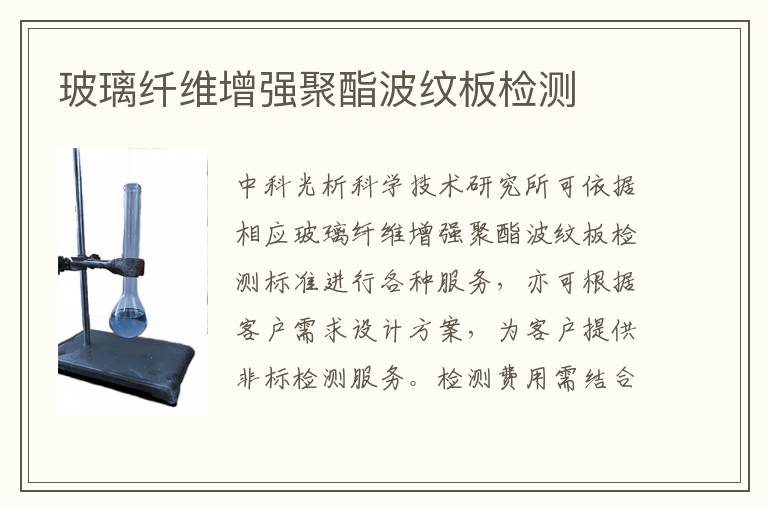關(guān)鍵詞:玻璃纖維增強(qiáng)聚酯波紋板測(cè)試儀器,玻璃纖維增強(qiáng)聚酯波紋板測(cè)試案例,玻璃纖維增強(qiáng)聚酯波紋板測(cè)試周期