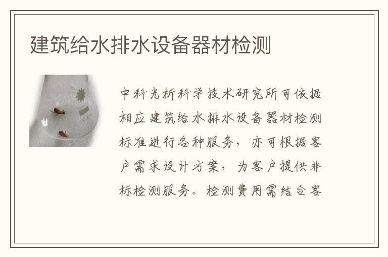 關鍵詞:建筑給水排水設備器材測試標準,建筑給水排水設備器材測試周期,建筑給水排水設備器材測試案例