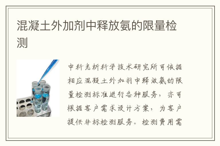 關(guān)鍵詞:混凝土外加劑中釋放氨的限量測(cè)試范圍,混凝土外加劑中釋放氨的限量測(cè)試儀器,混凝土外加劑中釋放氨的限量測(cè)試標(biāo)準(zhǔn)