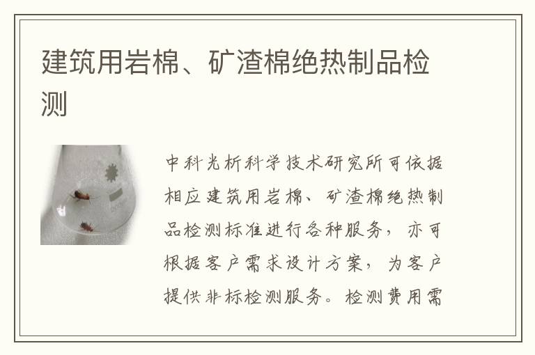 關(guān)鍵詞:建筑用巖棉、礦渣棉絕熱制品測(cè)試周期,建筑用巖棉、礦渣棉絕熱制品測(cè)試標(biāo)準(zhǔn),建筑用巖棉、礦渣棉絕熱制品測(cè)試方法