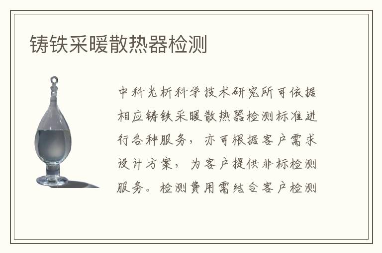 材料成分分析:通過光譜或化學(xué)方法檢測(cè)鑄鐵中的元素含量,確保材料純度符合標(biāo)準(zhǔn),影響散熱器的耐腐蝕性和壽命。