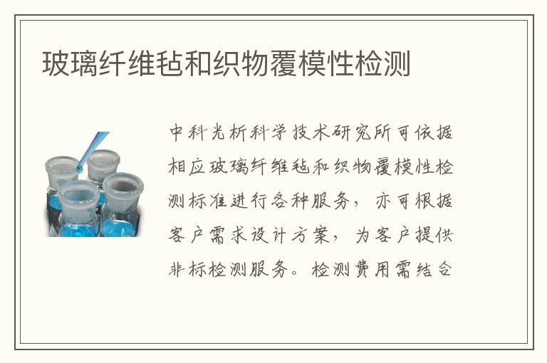 關鍵詞:玻璃纖維氈和織物覆模性測試方法,玻璃纖維氈和織物覆模性測試儀器,玻璃纖維氈和織物覆模性項目報價