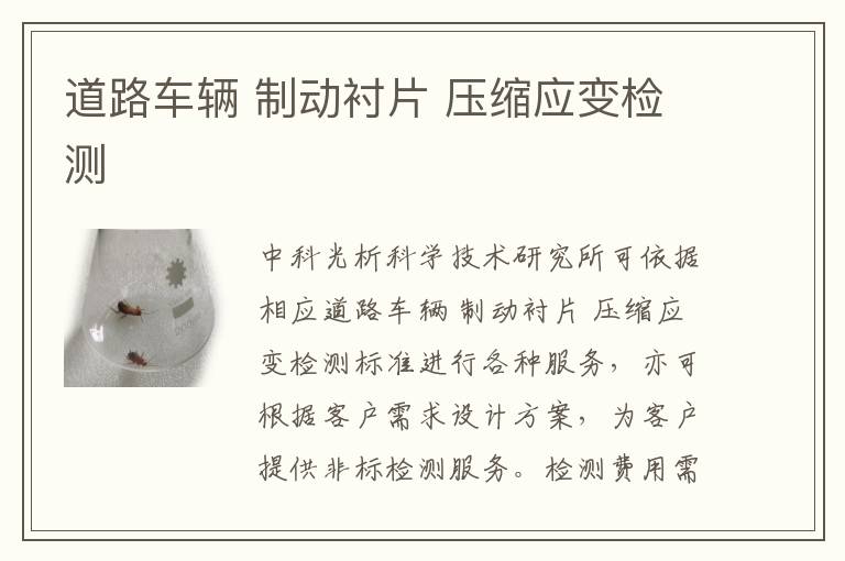 電動車制動襯片:適配電動車再生制動系統(tǒng),壓縮應變檢測評估其與電控系統(tǒng)的兼容性,確保高效能量回收和制動效果。