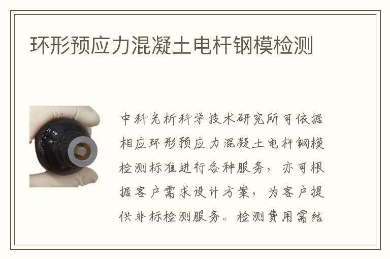 關(guān)鍵詞:環(huán)形預(yù)應(yīng)力混凝土電桿鋼模測試方法,環(huán)形預(yù)應(yīng)力混凝土電桿鋼模測試案例,環(huán)形預(yù)應(yīng)力混凝土電桿鋼模測試機(jī)構(gòu)